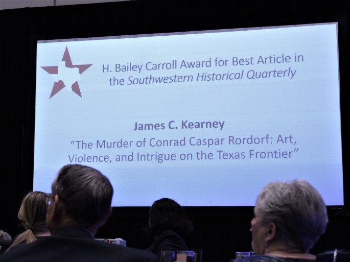 The early translations of his work into English, which began to appear in book-length form only in the early twentieth century, notably works in 1925 and 1935, are marred by both unintentional errors and tendentious censorship. A new translation was published in 2021 by Dr James E. Crisp, emeritus professor at the University of North Carolina. Dr Crisp worked for many years on a fresh annotated translation of the memoir and expanded biography of Ehrenberg’s very eventful life. His work corrects the deficiencies associated with the earlier translations while helping the reader distinguish between fact and embellishment with small essays inserted before the various chapters. I assumed a role in the book as co-translator about ten years ago upon the death of Louis Brister, who began the first translation. It has been a great honor to be associated with the book which has garnered several awards since its release, including the Summerfield G. Robertson Award, the Western History Association Award, and the Texas Philosophical Society Award, which I had the honor of attending.